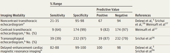 Figura2: Comparativo entre os principais métodos diagnósticos para trombo em VE.