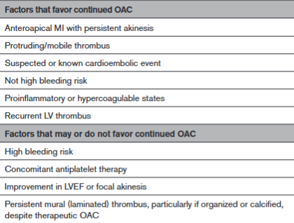 Figura 7: Fatores para avaliar continuação ou suspensão da anticoagulação em trombos de VE persistentes.